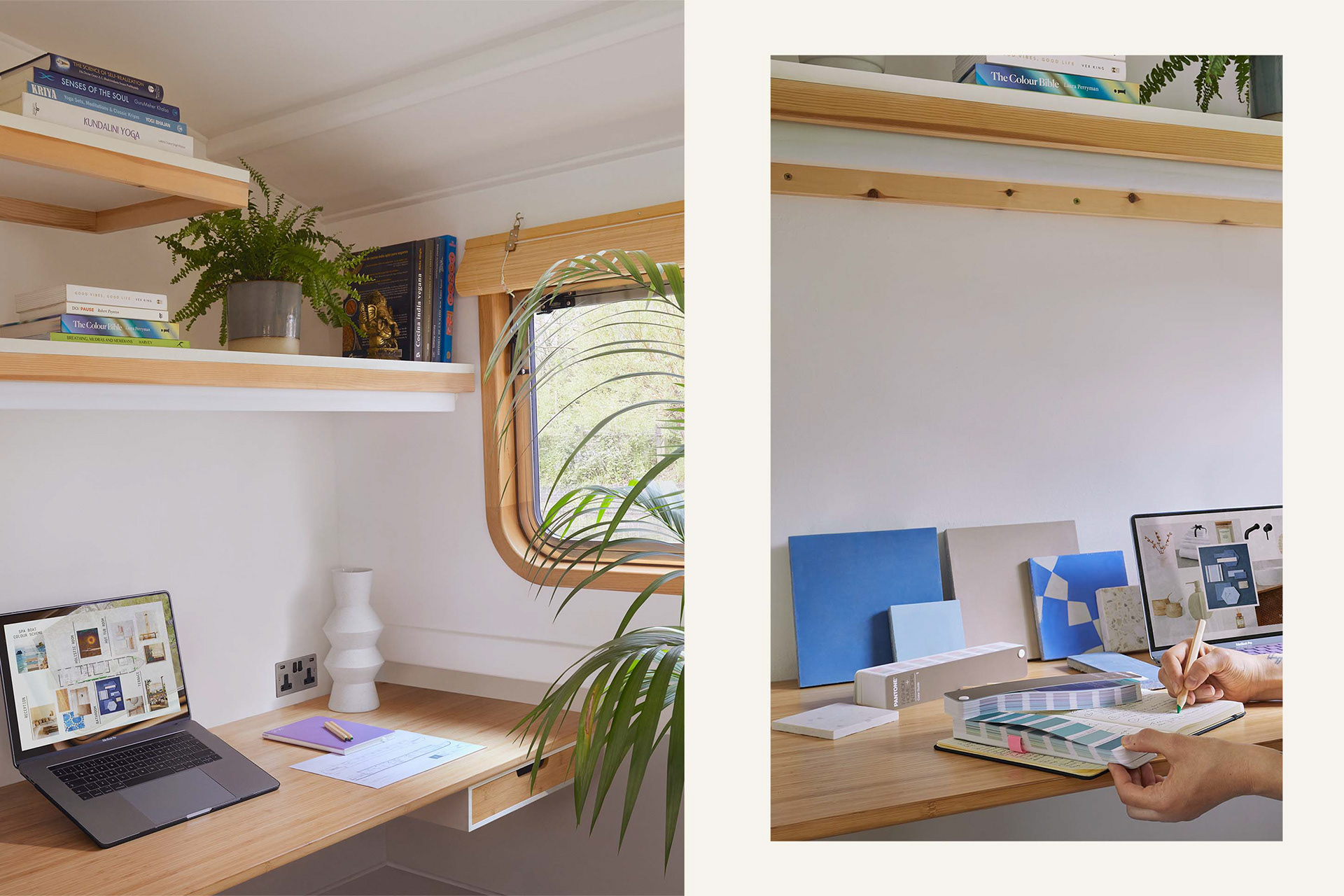 TAYRONA is a bespoke, eco-friendly liveaboard boat built in 2021 and designed by Laura Migales, founder of Colour of Living. Tailored for continuous cruising on the UK canal network, it features a reverse layout with a spacious, open-plan studio living area that includes a full kitchen, convertible sofa/bed, and space-saving furnishings ideal for remote work and hosting. The boat is fully equipped with a Morso stove, Webasto-controlled radiators, a modern bathroom, advanced water filtration systems, and generous storage throughout. It also boasts 4x 400W solar panels and batteries to support off-grid living. Designed for wellness and sustainability,